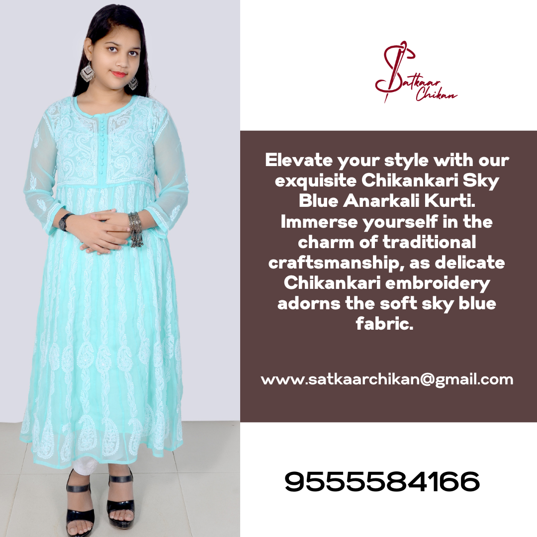 Buy lucknowi chikankari kurta, chikankari kurtis, suit sets, anarkali sets for kids, straight kurtis for women from satkaar chikan.